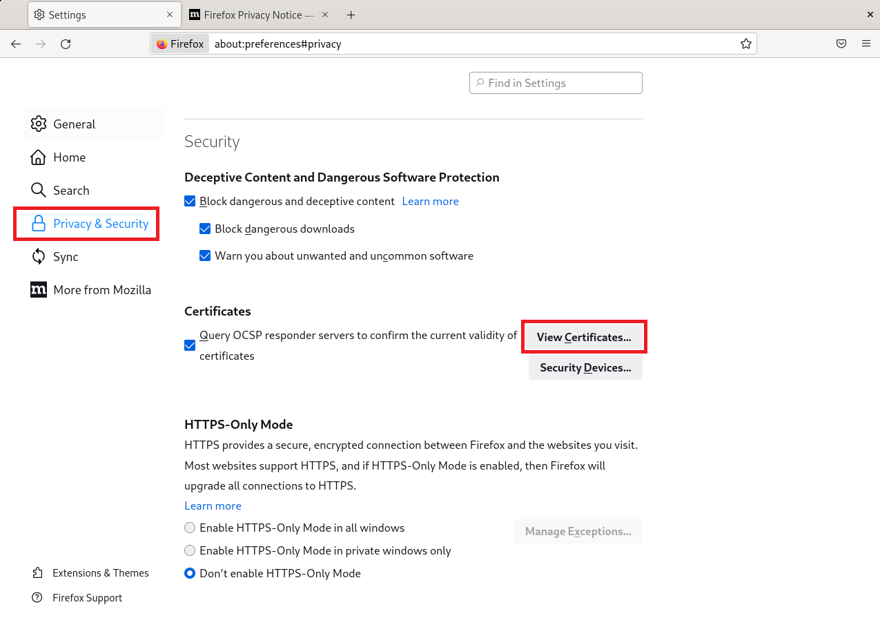 Privacy & Securityи затем в разделеCertificatesкликните наView Certificates...: