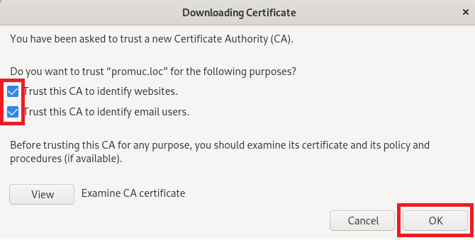 Сертификат CA доступен в /opt/promuc/proxy/conf/certs/ca.crt и по ссылке https://promuc.loc/ca.crt