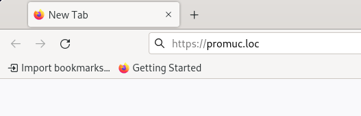 Для запуска интерфейса пользователя необходимо в адресной строке web браузера ввести адрес https://имядомена, для данного примера он будет https://promuc.loc: