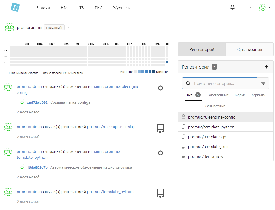Каталог сервиса Gitea |